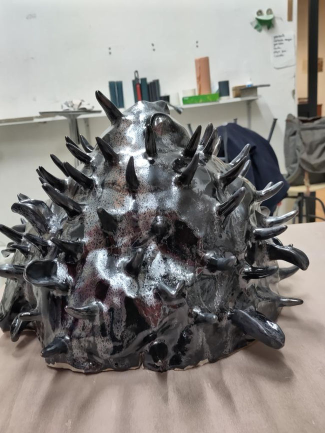 Dans la continuité de mes recherches picturales (La Pierre, La Langue), j’ai façonné ces objets en céramique et en pâte à modeler synthétique comme des fragments d’un paysage intérieur.
